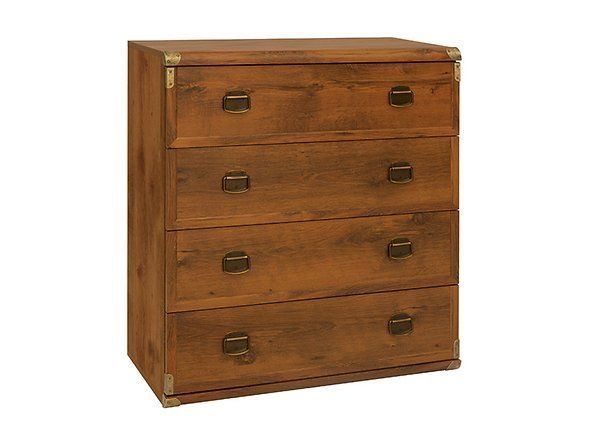 Комод высотой 87 см и шириной 80 см легко умещается в небольшое пространство. Наличие в нем четырех ящиков говорит в пользу удобства и высокой наполняемости изделия. В этих глубоких отсеках можно хранить любые вещи, от игрушек до бытовых атрибутов и белья, верхнюю часть использовать, как подставку для предметов декора или светильника. Модель идеально подходит для наполнения детских, гостиных, прихожих, оформленных в классическом стиле или кантри.