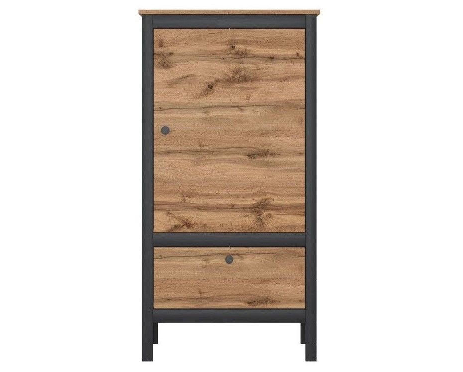 Компактная тумба Loft создана в Белоруссии из безопасных материалов ЛДСП и МДФ, не требующих специальных условий эксплуатации. Ее каркас отличается высокой надежностью и способностью выдерживать повышенные нагрузки. Конструкция тумбочки включает распашную дверь (допускается левое и правое расположение) и ящик на металлических направляющих. Он обеспечивает полное выдвижение и свободный доступ к самым удаленным уголкам.