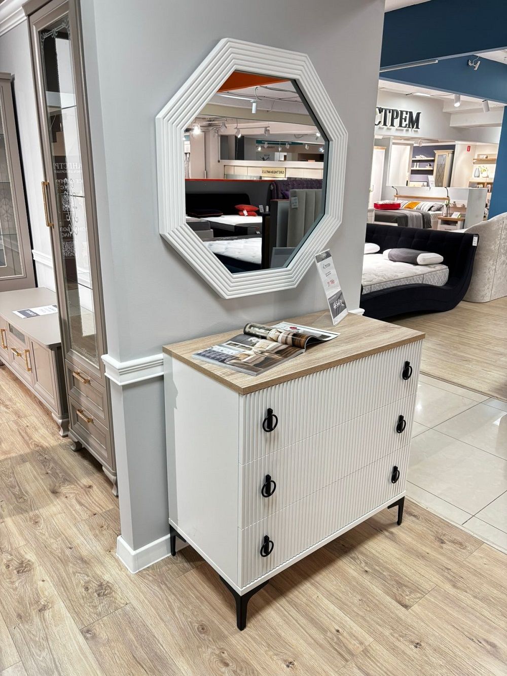 Зеркало "Стелла" с фрезерованной рамкой из МДФ становится ярким акцентом пространства.