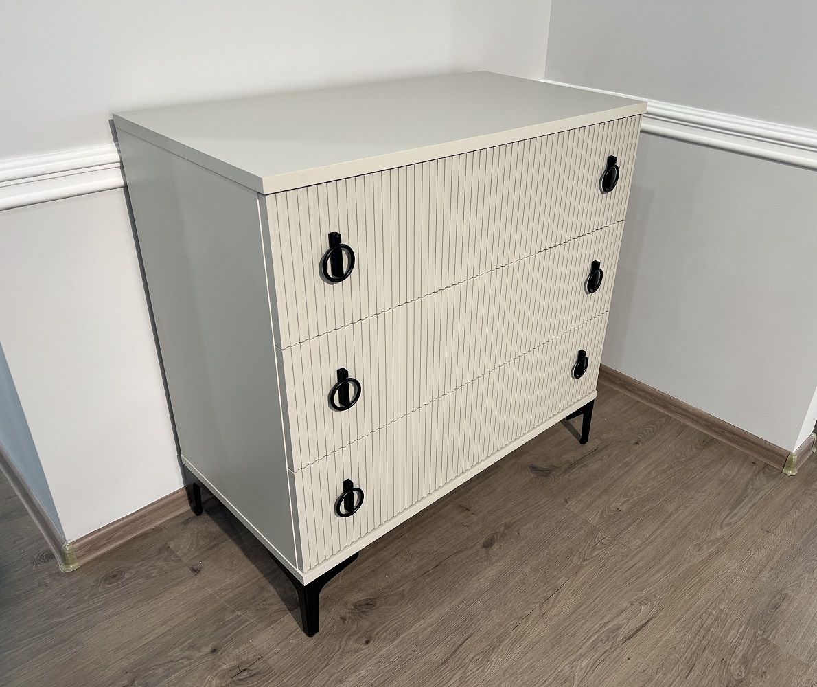 Дополняют кровать стильные и функциональные прикроватные тумбы "Стелла". Их рельефные фрезерованные фасады и элегантные ручки делают их настоящим украшением спальни. Ящики оснащены современными бесшумными механизмами с доводчиком  Внутри  достаточно места для хранения личных вещей.