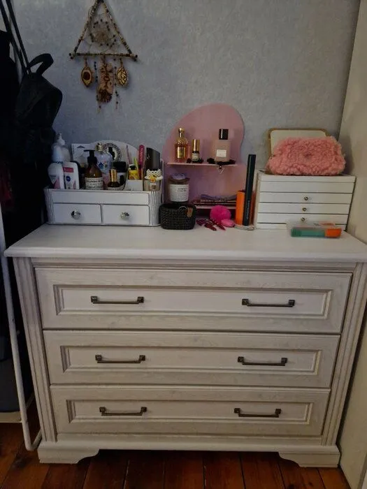 Были в салоне. Комод привлек внимание цветом и текстурой. По размеру он такой же, как и любой другой комод, но очень миленький. Оплатили сразу на месте. Нам предлагали забрать сразу, но были другие планы, домой не ехали. Заказали доставку, подождали 2 дня. Претензий нет. Цены приемлемые. И выбор большой.