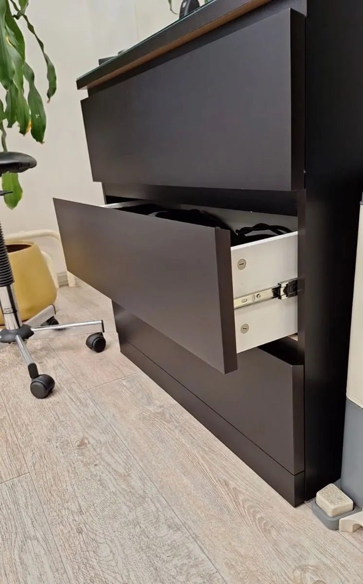 Комод Варма 3, 803х400х775, цвет Черный Ясень. Стильный удобный комод с тремя выдвижными ящиками. Изделия с покрытием натуральным шпоном привнесут в интерьер особые штрихи экологичности, натуральности, статусности. Прекрасно впишутся в разнообразный дизайн, станут неотъемлемой частью теплой уютной домашней атмосферы. Хорошие параметры функциональности (качественные телескопические направляющие, вместительность, удобство использования).