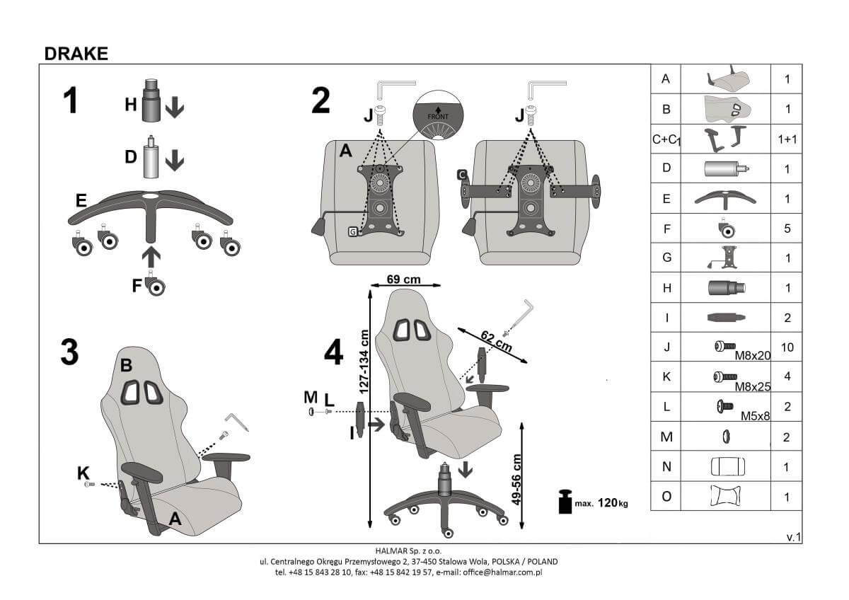 Кресло компьютерное Halmar DRAKE (красный/черный)