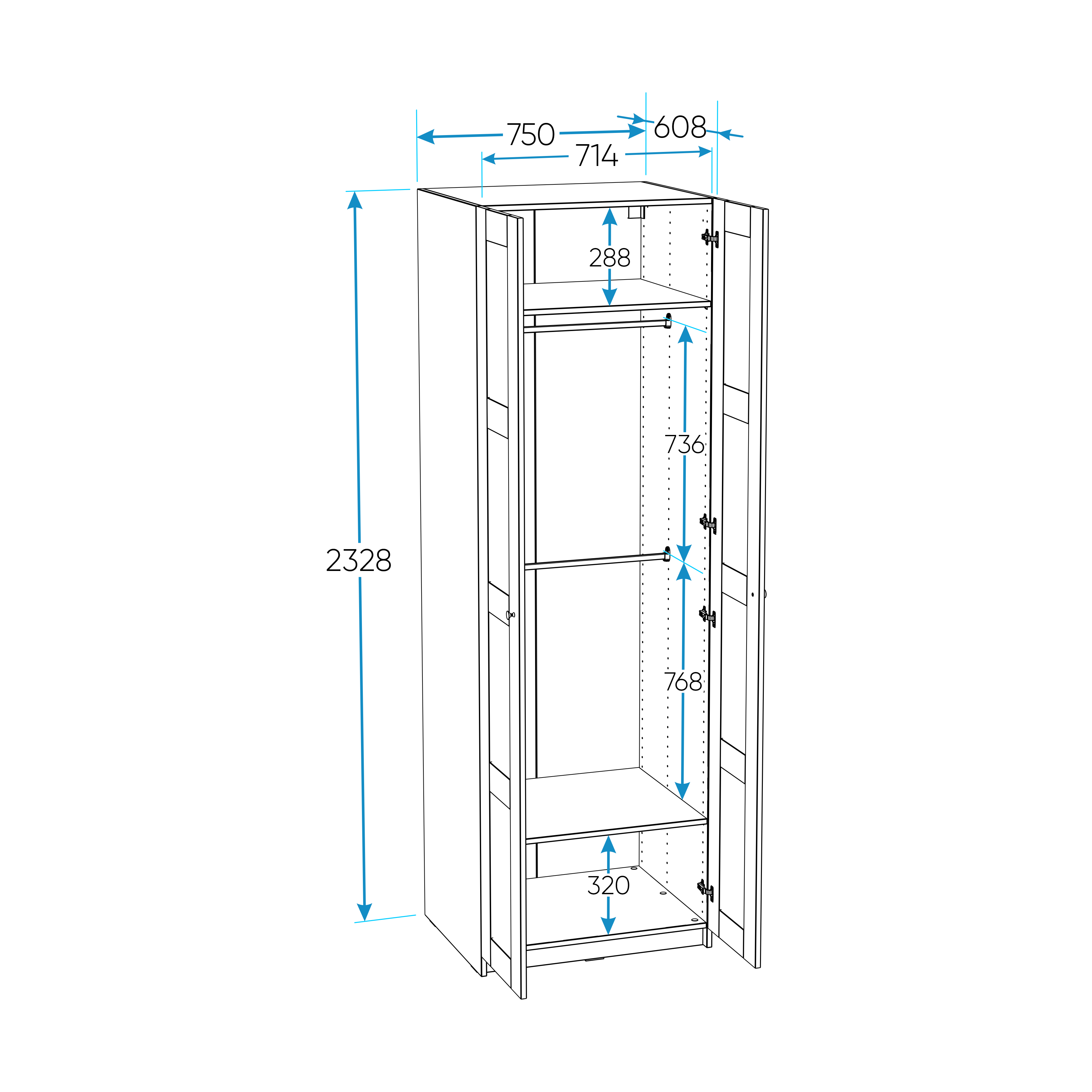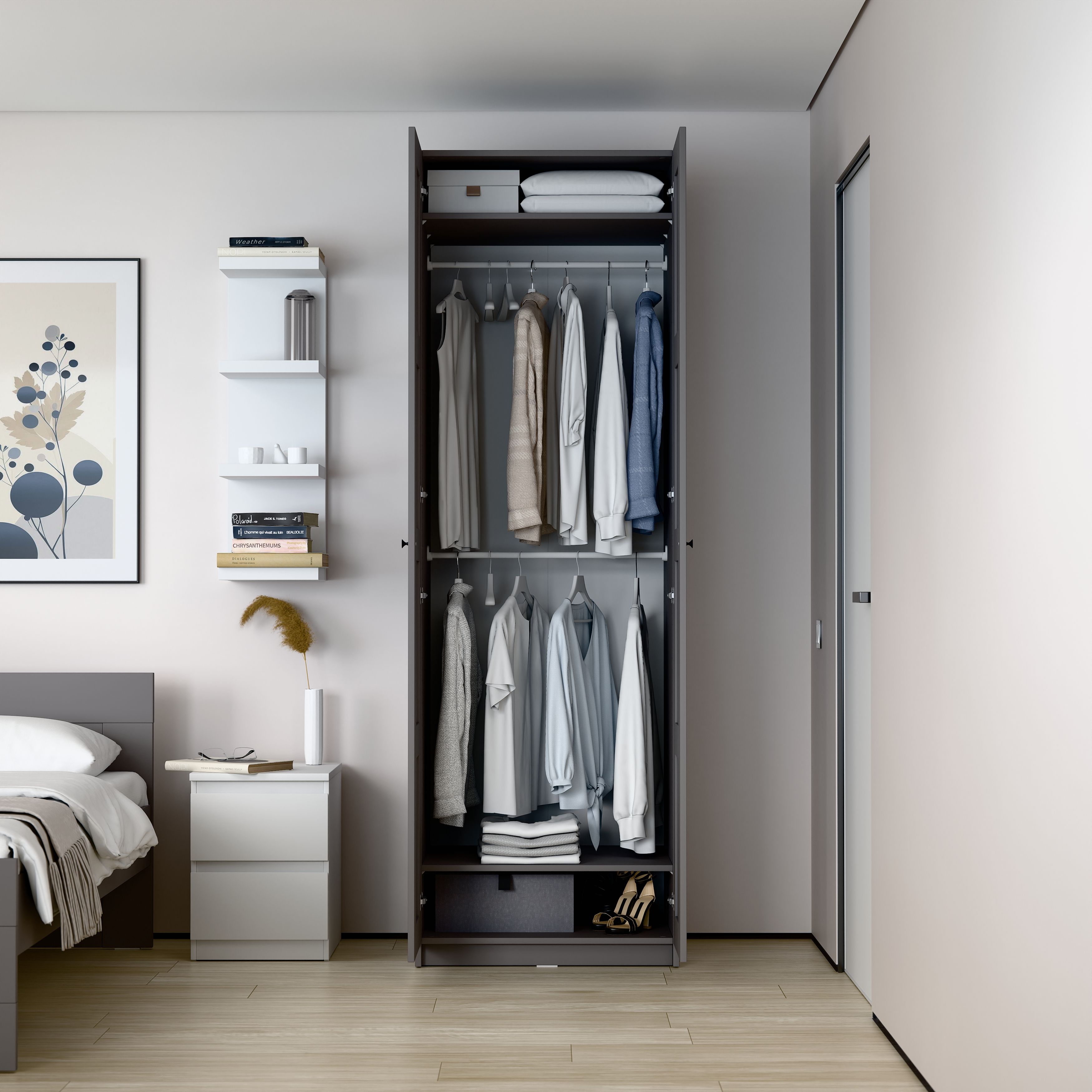 Шкаф МАКС для одежды двухдверный, 750х610х2330, цвет серый. Укомлектован двумя полками и штангой для вешалок. Изготовлен из кашированного ДСП толщиной 18 мм. Крепится к стене. Гарантийный срок для жилых помещений 24 месяца, для общественных помещений - 18 месяцев.