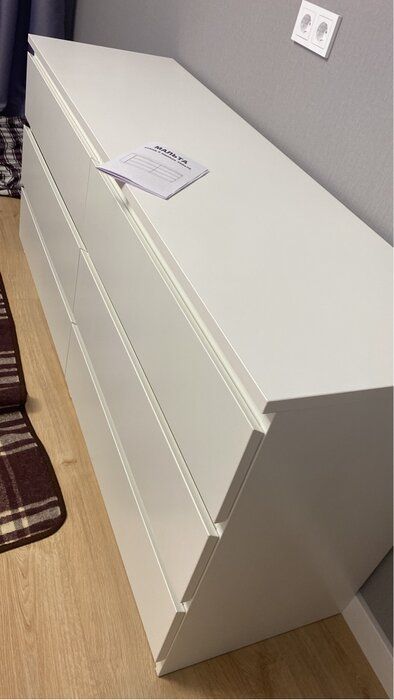 Вполне достойный комод. Не снимаю звезду , тк вопрос с продавцов был оперативно решен в максимальные сроки. Комод приходит в разобранном виде в трех коробках, рекомендую сразу их распаковывать и смотреть все детали. Так вот, по выше написанной рекомендации мы это не сделали и когда собрали весь комод, в третей комплектации обнаружили сосколы и поцарапанный фасад одного из ящика (фото) при чем видно что явно меняли артикул и еще так по уродски это делали. Разбираться не стали кто что и чья вина . Возвращать комод нам не интересно , тк он полностью собран. Продавец предложил два варианта, один из которых нас полностью устроил, дослали полностью коробку где бы фасад , который мы собственно говоря и заменили