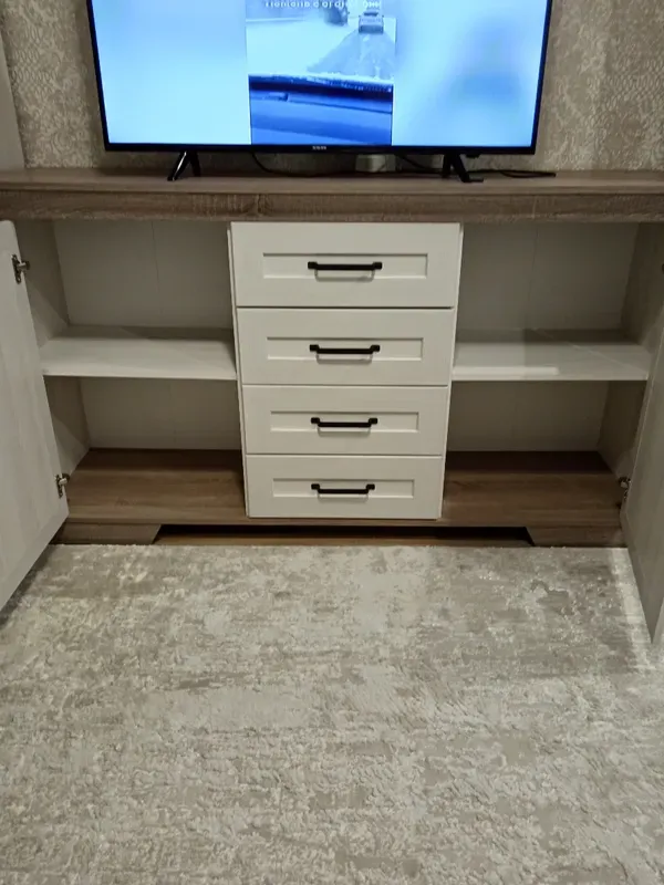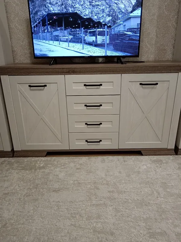 Купили комод серии Марсель, тк шкафы уже были. Тяжелая, прочная, качество понравилось. Комод, муж собирал сам. Говорит, не сложно. Мебелью довольны.