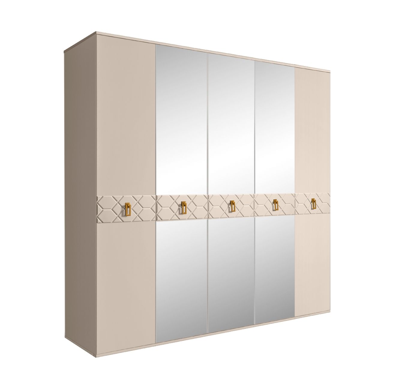 Шкаф 5-ти дв. с зеркалами Bogemia Farfalle (Ваниль/Золото) БМШ1/5(Fa)
