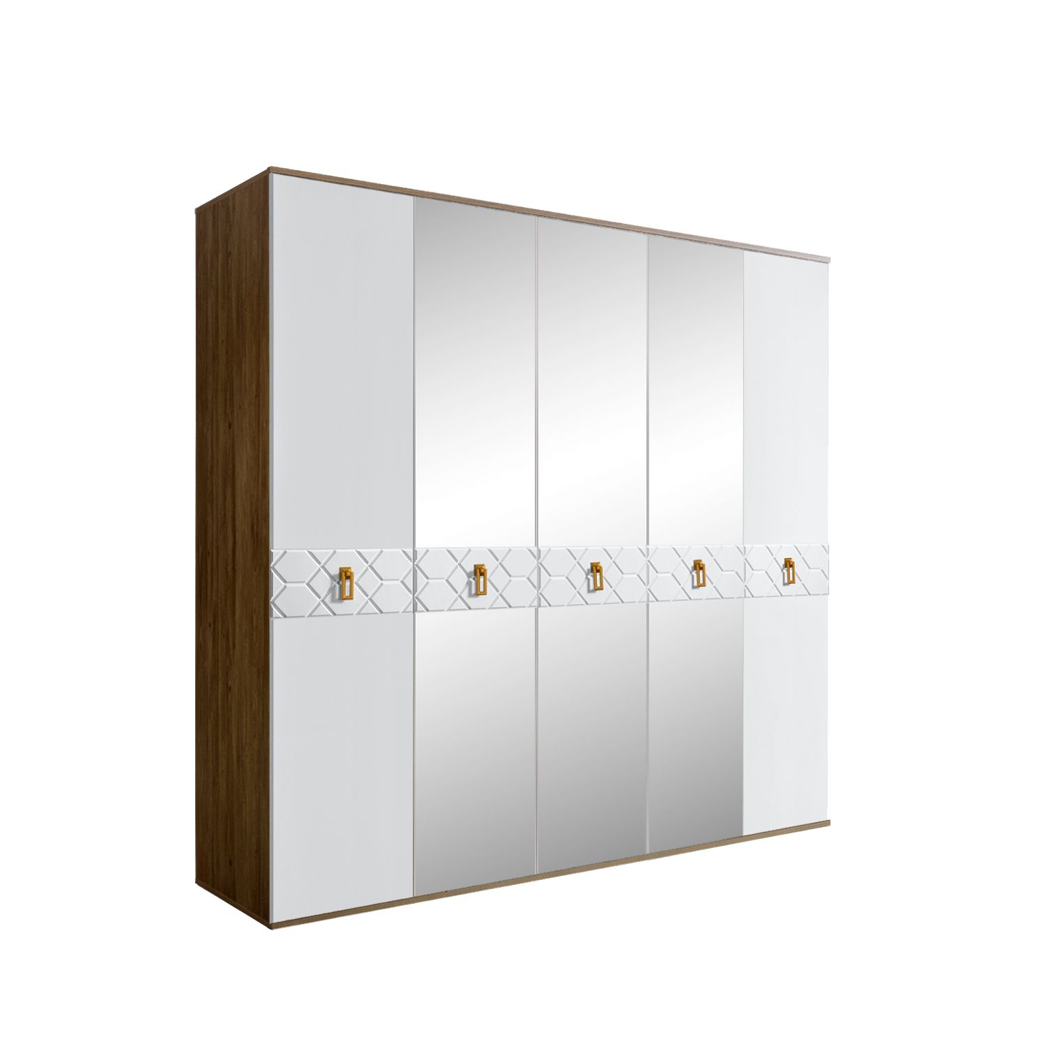 Шкаф 5-ти дв. с зеркалами Bogemia Woodline Fa (Белый/Золото) БМШ1/5(Fa)