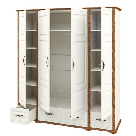 Шкаф для одежды 4-х дверный с классической фрезеровкой;