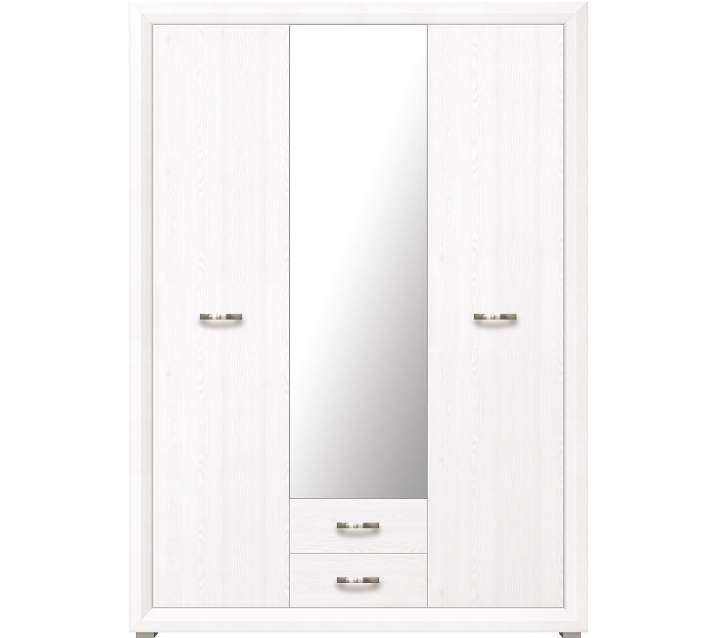Вместительный трехстворчатый шкаф Malta имеет высоту 211 см, ширину 151 см и глубину 60 см. Это прямая конструкция, которую можно поставить у стены отдельно или в составе гарнитура. Модель выполнена из ЛДСП и оборудована пластиковыми ножками. Для удобства пользования установлены металлические ручки цвета хром.