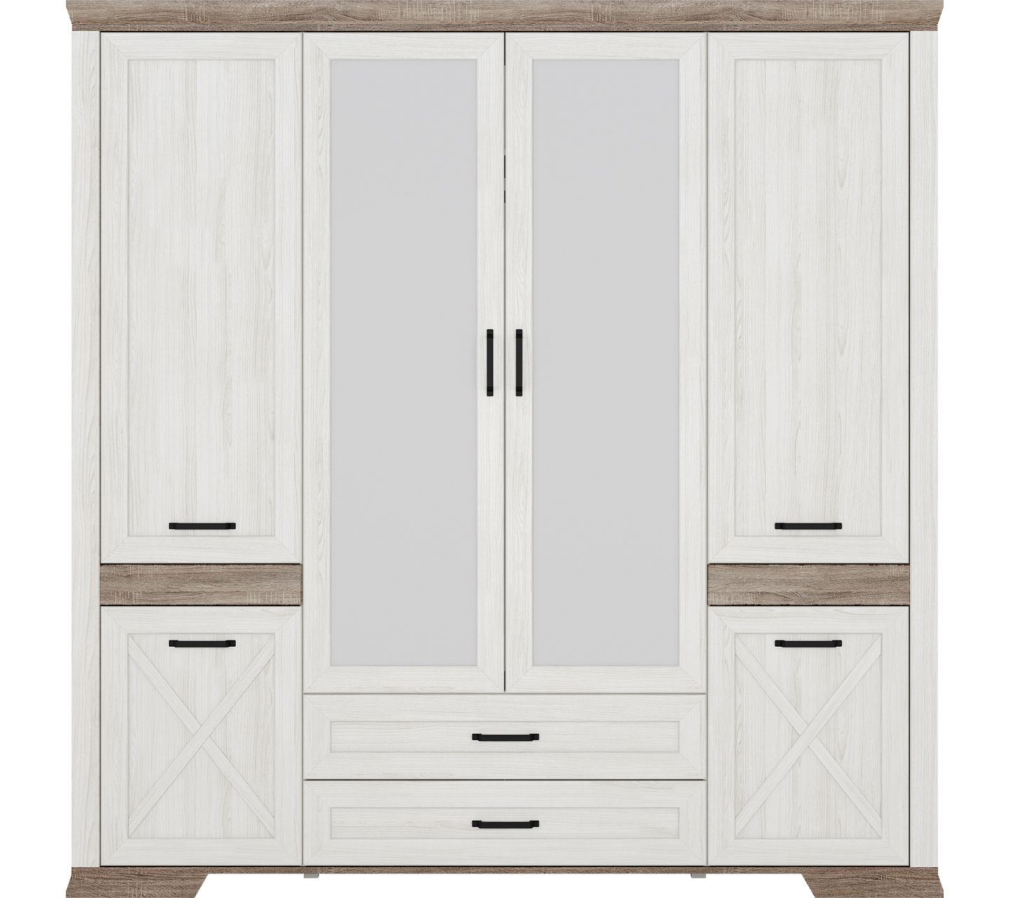 • В центральной части – за распашными дверями – полка и стационарная штанга для одежды;