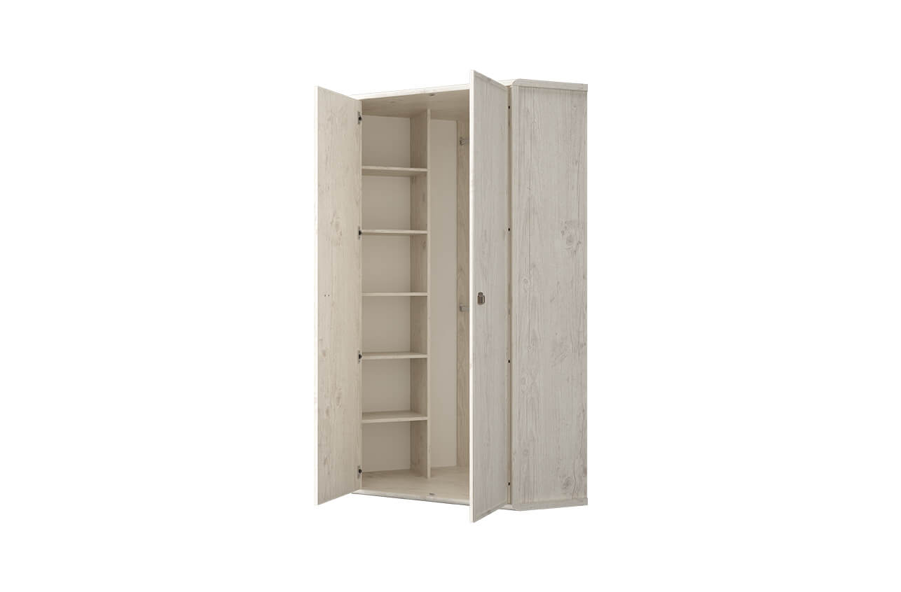 Угловой шкаф 2D коллекции Magellan – образец лаконичного современного дизайна и удобного наполнения. Он состоит из двух распашных дверей, пяти внутренних полок и двух металлических штанг. Эта вместительная модель с универсальным углом рационально использует полезное пространство комнаты. Он идеально впишется в небольшую прихожую, спальню, детскую и не занимает полезное пространство.