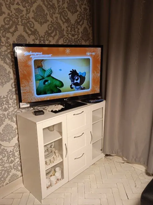 Тумба СИРИУС с двумя стеклянными дверьми и тремя ящиками, 1171х412х946, цвет Белый. Изготовлена из кашированного ДСП толщиной 16 мм. Крепится к стене. Гарантийный срок для жилых помещений 24 месяца, для общественных помещений - 18 месяцев.