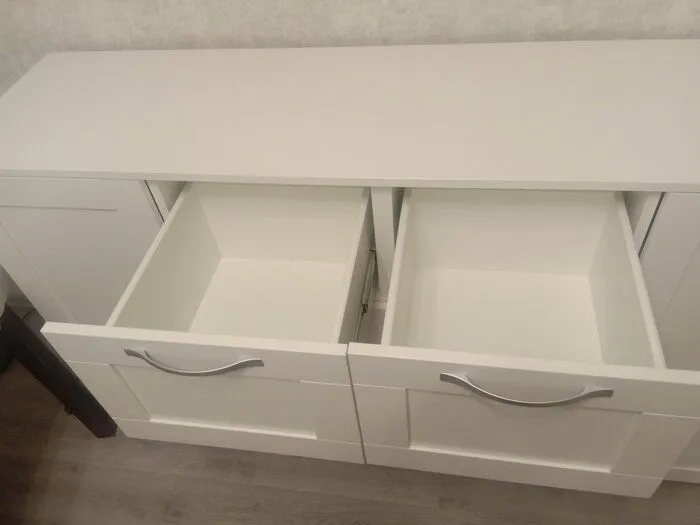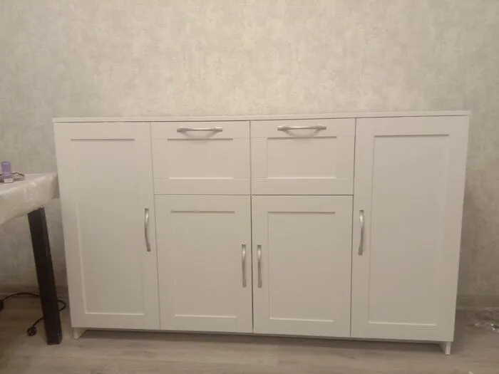 Красивый,вместительный комод,сборка понятная,упакованно на отлично. Все хорошо,понравился комод,лаконичный,стильный,большой, как и хотела,присматриваю ещё такой , только со стеклянными дверцами.К покупке советую.