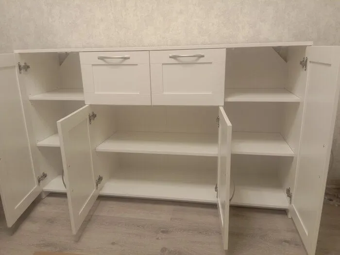 Хороший внешний вид и соотношение цена/качество. Искал широкую тумбу или комод. На заказ с ящиками считали около 40 тр. А это готовая тумба. Немного бы шире боковые секции (на 10 см). Длина 180 см была бы идеальна для меня.
