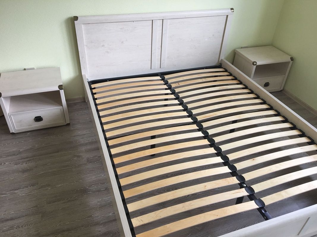 Современная спальня приятного белого оттенка. Доставили вовремя, при осмотре дефектов не обнаружил. Сборкой занимался самостоятельно, но благодаря понятной инструкции справился быстро. Видно, что мебель сделана на совесть и простоит много лет. Спасибо за качественный продукт.