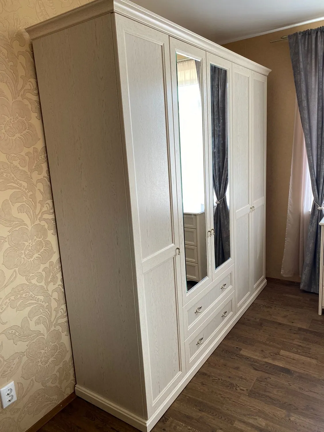 Мебель в комнате смотрится даже лучше, чем на фото. Очень красиво сделаны фасады, мне особенно понравились фигурные ручки, очень элегантно выглядят. Шкаф очень вместительный, смотрела размеры перед покупкой, но все равно не ожидала, что так много вещей поместится.