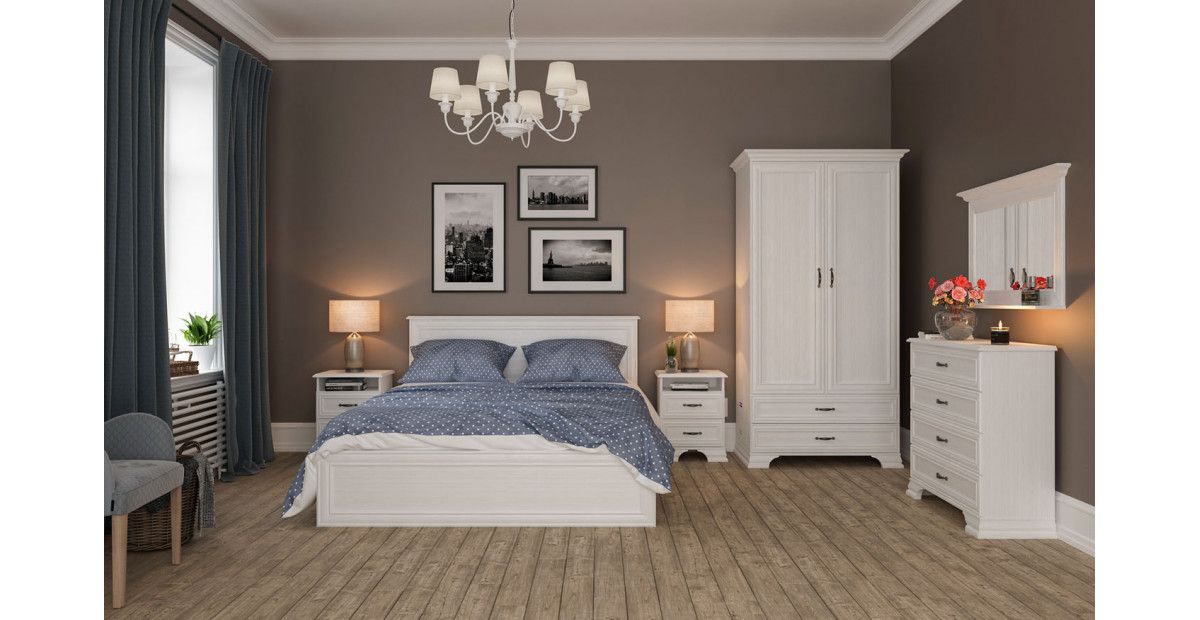 Спальня Юнона от Мебель-Неман в классическом стиле с отделкой структурной фактуры, обрамленный рамочным фасадом, где металлические ручки выгодно подчёркивают стиль и изящество, всегда актуальна и востребована.