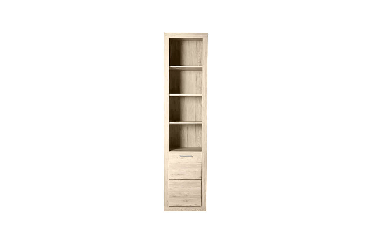 Открытый шкаф Oskar 1D совмещает функцию хранения и демонстрации. Модель имеет нестандартную конструкцию, верхняя часть которой полностью открыта, а внизу установлена глухая дверца. Ее полки изготовлены из ЛДСП толщиной 16 мм. Они подходят для хранения посуды, красивых вещей и семейных реликвий.