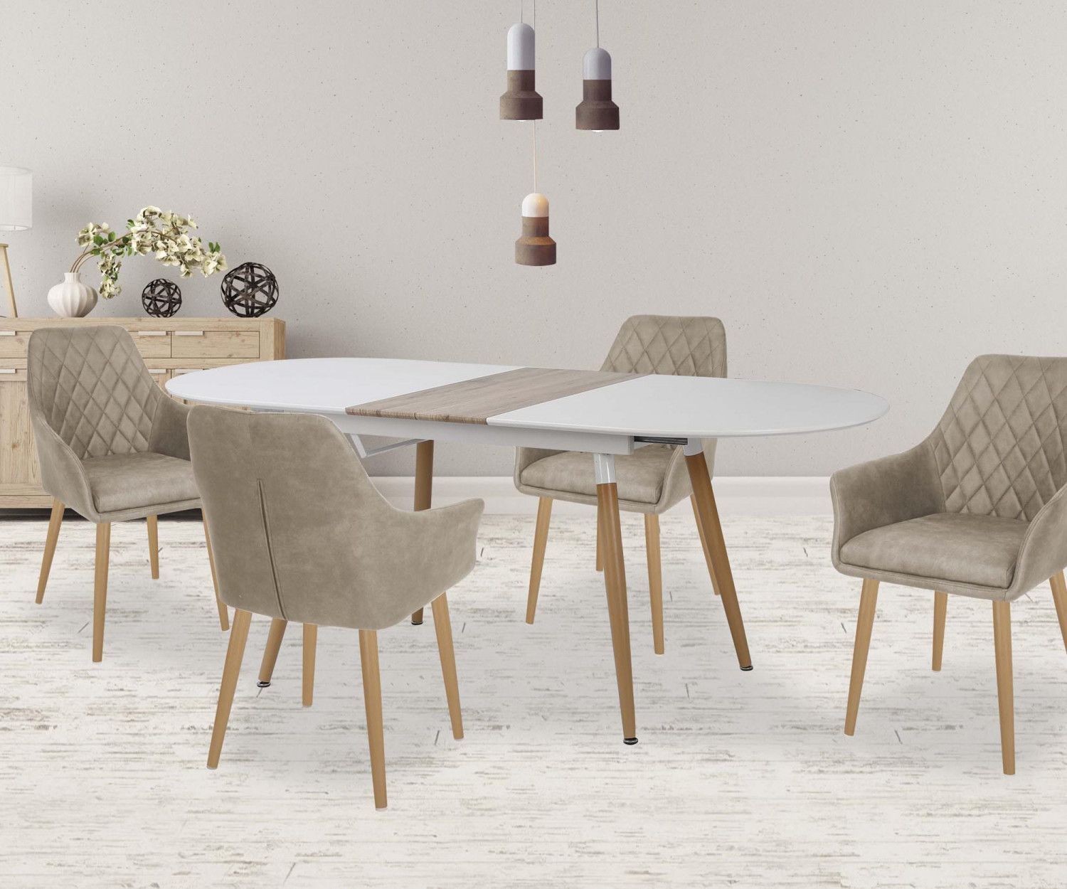 Стол обеденный Halmar CALIBER раскладной (белый матовый/дуб сан ремо)