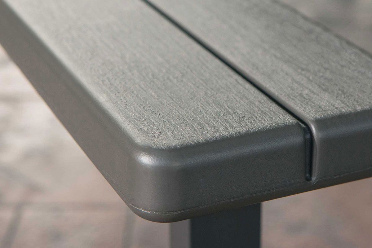 • Надежность. Стол со скамьей имеет усиленную стальную раму и изготовлен с применением прочного пластика, который не рассыпается, не трескается и не расслаивается. Максимальная допустимая нагрузка на скамью - 408 кг.