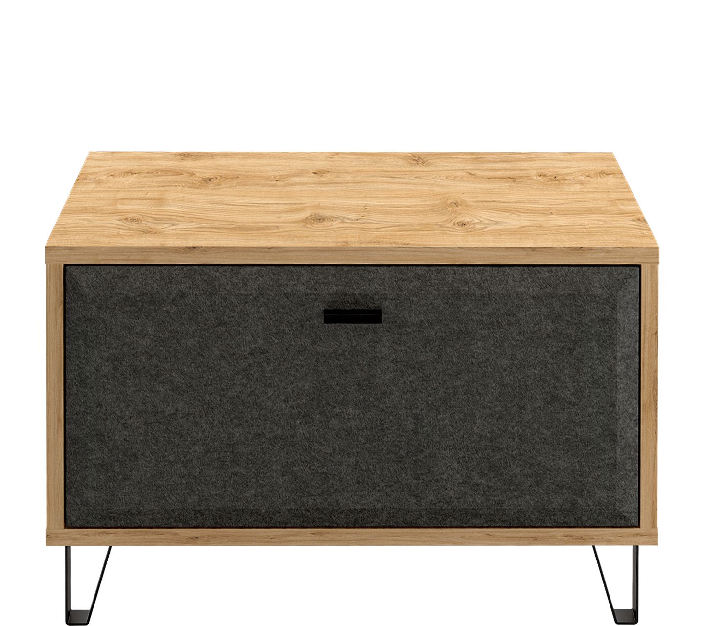 Благодаря газовому механизму европейского производства, откидная дверца плотно закрывается, тем самым защищает содержимое от пыли и намокания. Напольная тумба Grace изготовлена в Белоруссии из безопасных, износостойких материалов ЛДСП и МДФ. Благодаря нанесенной ламинированной пленке, ее каркас приобретает светлый оттенок дуба наварро, а фасад добавляет контраста в виде покрытия в цвете графит.