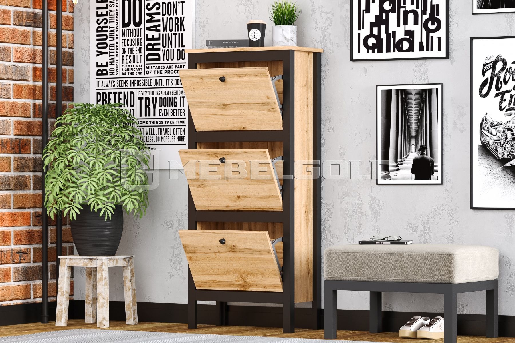Оптимизировать пространство прихожей и сделать его эффективнее можно с помощью предметов интерьера. Тумба для обуви Loft позволит достичь гармоничного баланса между порядком и эстетикой. Эта высокая и узкая обувница имеет 3 отделения с откидными дверцами. Модель закрытая и герметичная, отличается лаконичным внешним видом.