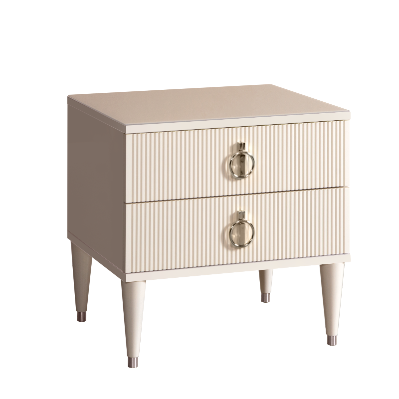 Тумба прикроватная 2 ящика Римини СОЛО (Бежевый/Серебро) РМТП-2(s)