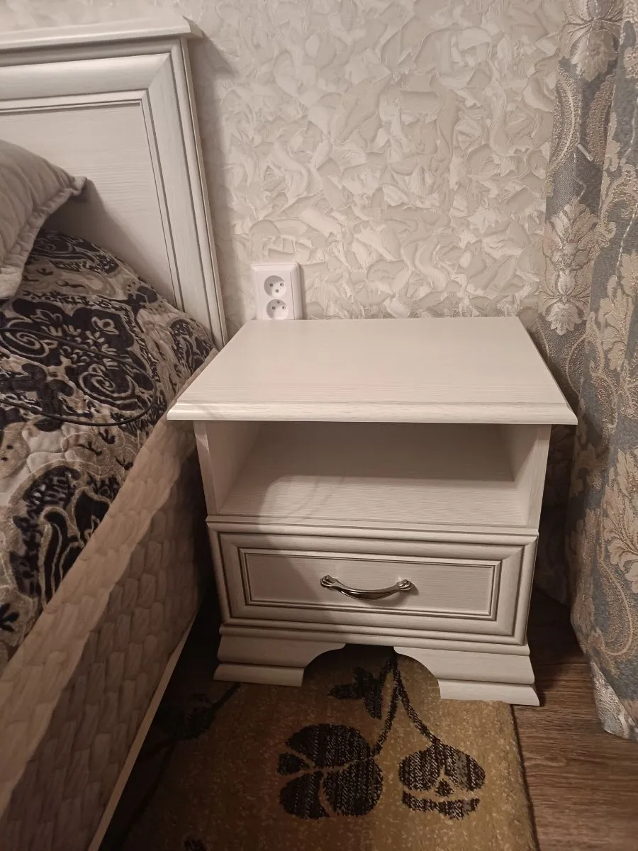 Тумбочку брали к гарнитуру Тиффани специально под цветы. Вписалась хорошо. Сборка простая,инструкция подробная , муж сам собрал за час. Рекомендую.