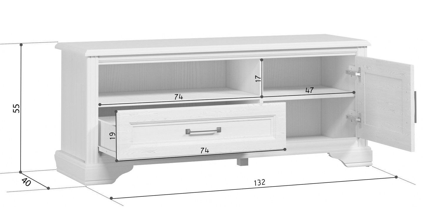 Со времени появления первого ЖК экрана и плазмы мебель для ТВ в корне изменилась. Тумба под телевизор Stylius с правой навеской фасада демонстрирует один из вариантов удобной комплектации. Эта широкая (132 см) и низкая модель (55,5 см) производства Белоруссии невероятно комфортна в эксплуатации. С нее удобно смотреть передачи с дивана и кресла. Экран будет располагаться на уровне глаз и не спровоцирует расстройства зрения.