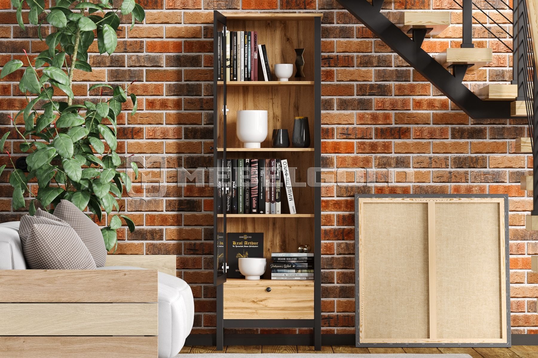 Основным материалом при изготовлении витрины Loft является ЛДСП и МДФ. Ее поверхность покрыта ламинированной пленкой, противостоящей расслоению мебели и ее быстрому износу. Коричневые фасады, оформленные под дуб вотан и дополненные черной окантовкой, прекрасно вписываются в интерьеры в стиле лофт.