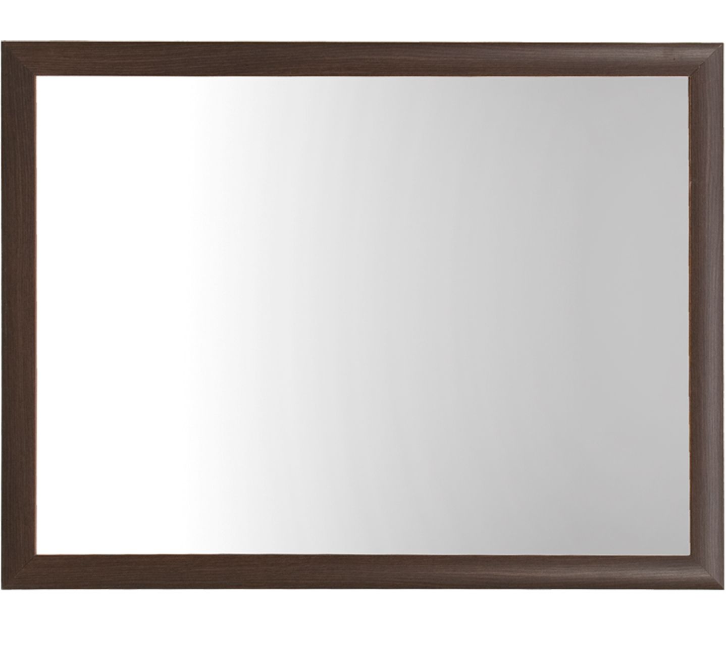 В дизайне современного зеркала Koen превалируют прямые линии и выразительная древесная текстура. Оно оформлено в элегантную раму из ЛДСП/МДФ с насыщенным оттенком венге штрокс и подчеркнутыми темными прожилками. Темный багет придает полотну благородный вид и особенно отчетливо выделяется на фоне светлой стены.